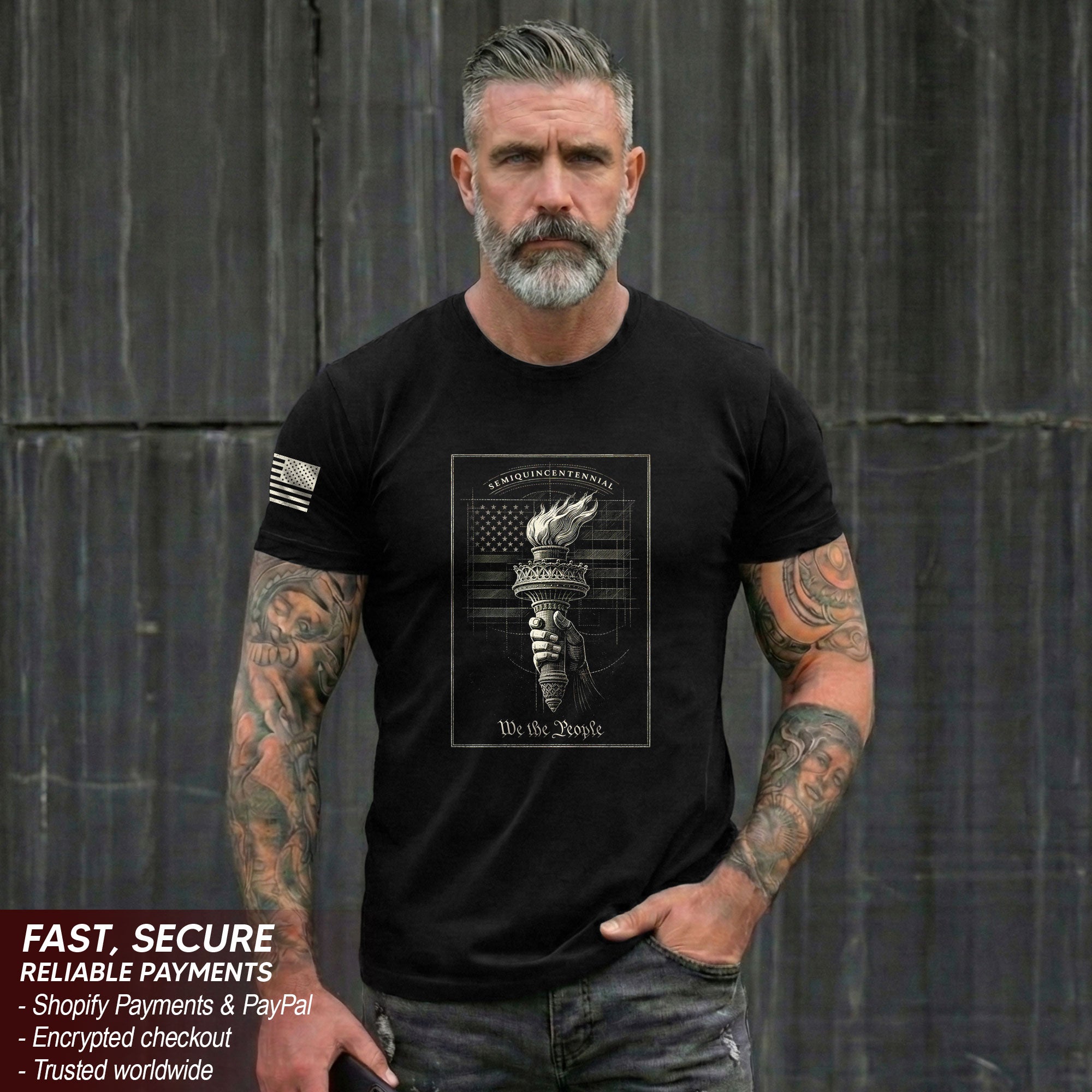 Celebrate America’s 250th anniversary from 1776 to 2026 with this patriotic T-shirt featuring the iconic Statue of Liberty torch and retro typography proclaiming ‘We The People.’ Crafted from premium, soft cotton fabric for all-day comfort, this high-quality tee is perfect for patriots honoring the nation’s enduring spirit of freedom and liberty. Ideal for Independence Day events, historical commemorations, family gatherings, or everyday wear to show your American pride. The vintage-inspired design captures the timeless energy of this historic milestone, making it a cherished keepsake for generations. Available in multiple sizes for men, women, and unisex fit. Machine washable and durable for long-lasting wear.