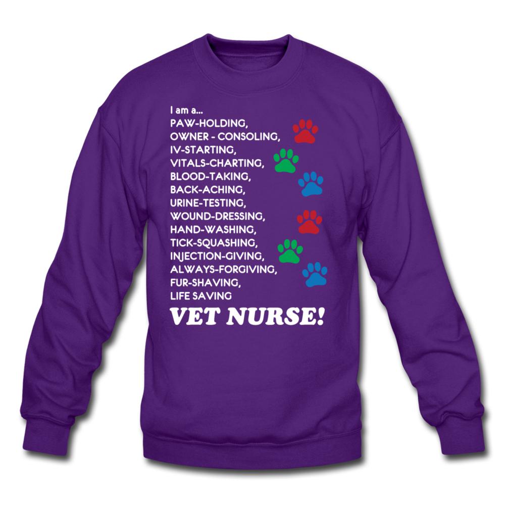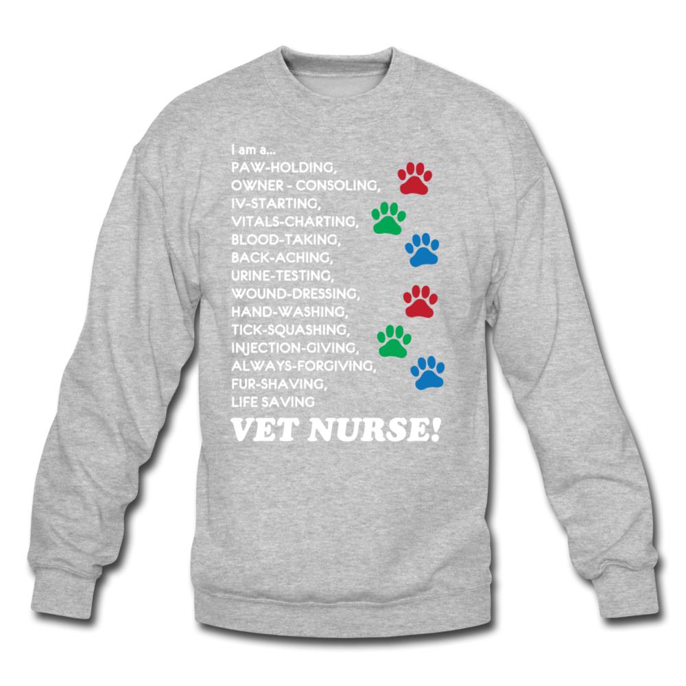 This Vet Nurse crewneck sweatshirt is great way to show your passion. Wear this I am a… Vet nurse Crewneck Sweatshirt proudly and entertain your friends and colleagues with some vet humour or show how much you love animals. Perfect gift for your friends and colleagues. Great for employee appreciation day, Vet Tech Week, World Veterinary day for your Veterinary Staff. This will become your favourite piece to wear and new conversation starter! Contact us and ask for bulk discounts or customization. Unique design for everyone in veterinary medicine who loves their profession! Apparel is the perfect gift idea for Birthday, Mother’s day, Father’s day, Christmas or any other special occasion. Find other cool t-shirts or hoodies for veterinarians, vet tech, veterinary students, vet receptionists, veterinary nurses, veterinary assistants and anyone involved in the veterinary profession! Please check our size chart and product description before you order. Treat yourself or give as a gift to someone special. Buy Now! SKU: ILV00081